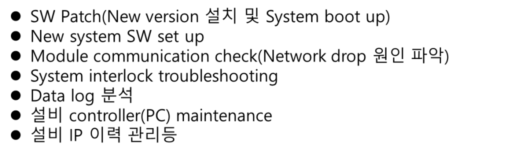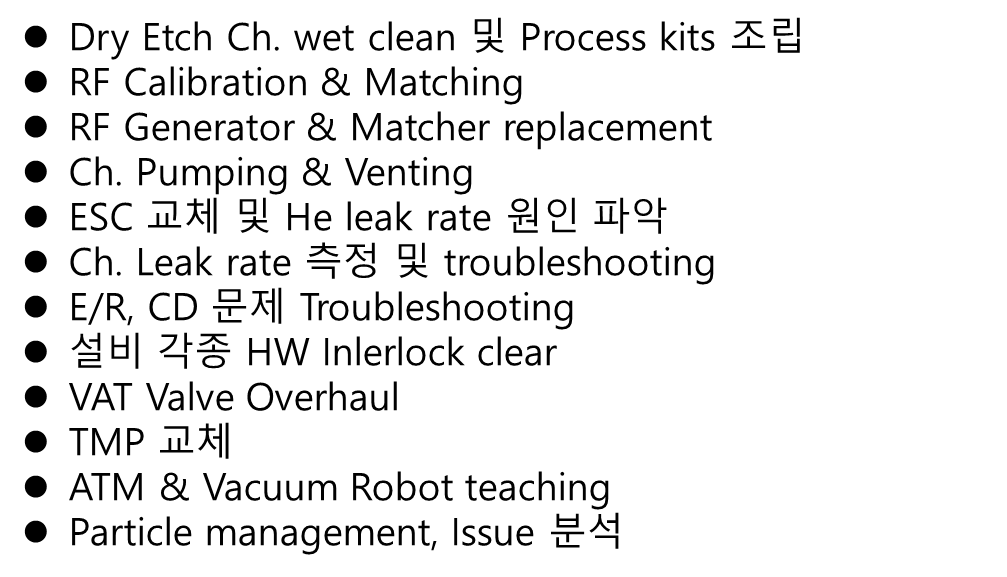 Dry Etch 설비에 대한 HW, SW 셋업/유지보수 전문업체